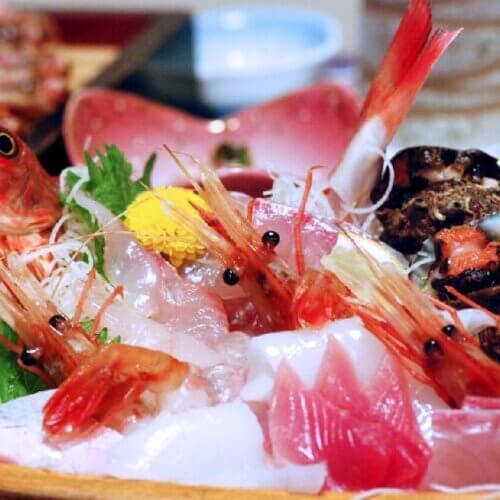ずわいがにフルコースに地物産の魚貝のお造り舟盛を加えた豪華なプランです。